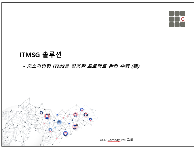 - AI 기반 ITMSG 솔루션은 지씨디컴퍼니 자체의 프로젝트관리 방법론을 통한 관리 컨설팅 이 근간을 이루고 있습니다.